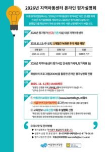 2026년 지역아동센터 온라인 평가설명회 개최 안내